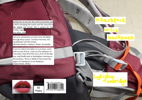 Previous Image Next Image Sneak Preview Out Soon! Lytisha’s latest pamphlet – A Backpack on his Backpack – will be out shortly. Here’s a sneak of the cover